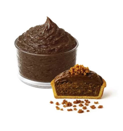 Crema spalmabile alla nocciola con inclusioni di croccante di pasta kataifi . Per esclusivo uso professionale.